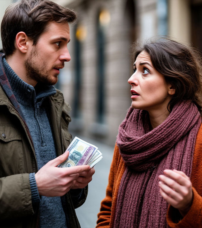 “Non stiamo chiedendo soldi”, rispose con voce calma ma decisa. — Vendiamo cartoline.