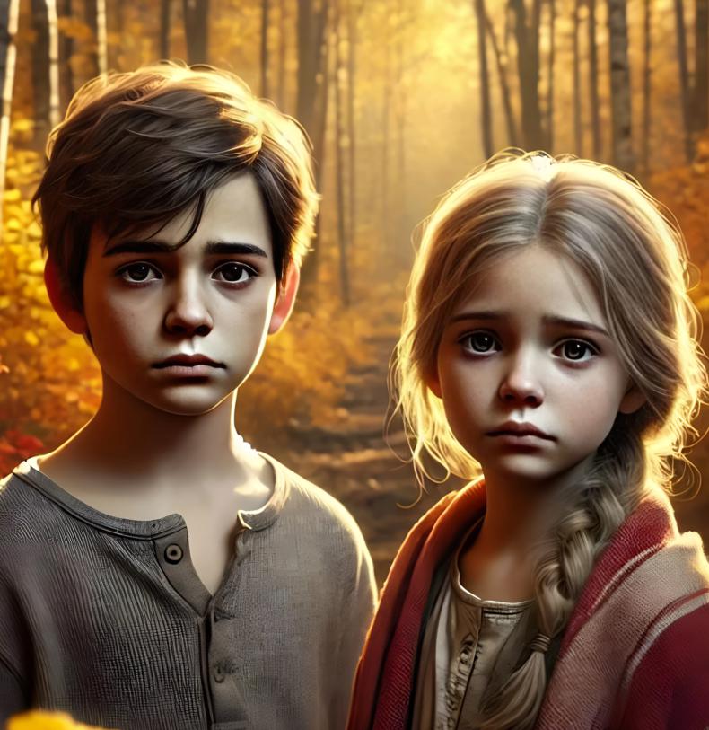 Poi la voce. Prima un sussurro, poi un pianto sommesso che lo fece correre a cercare la fonte. Tra gli alberi scorse due bambini, un ragazzo e una ragazza, sporchi, impauriti e incapaci di ricordare dove abitassero.